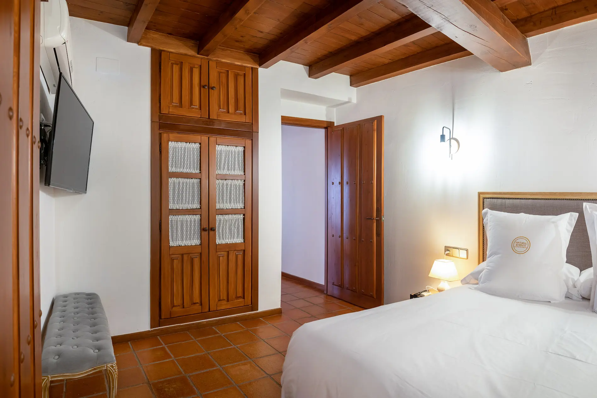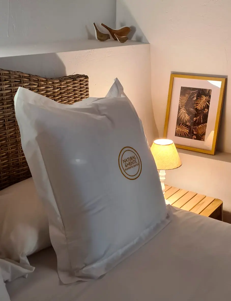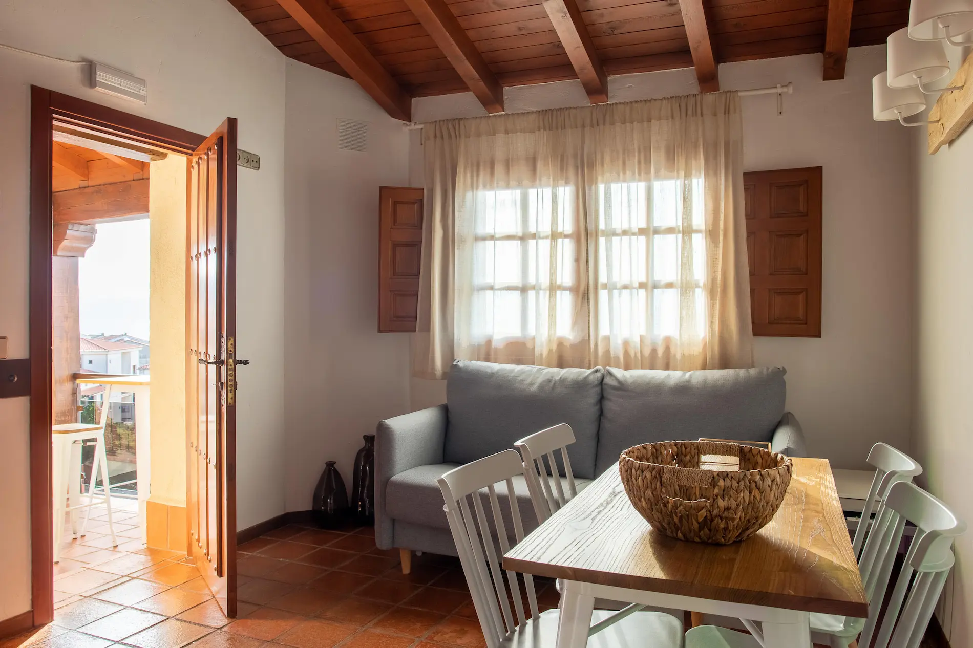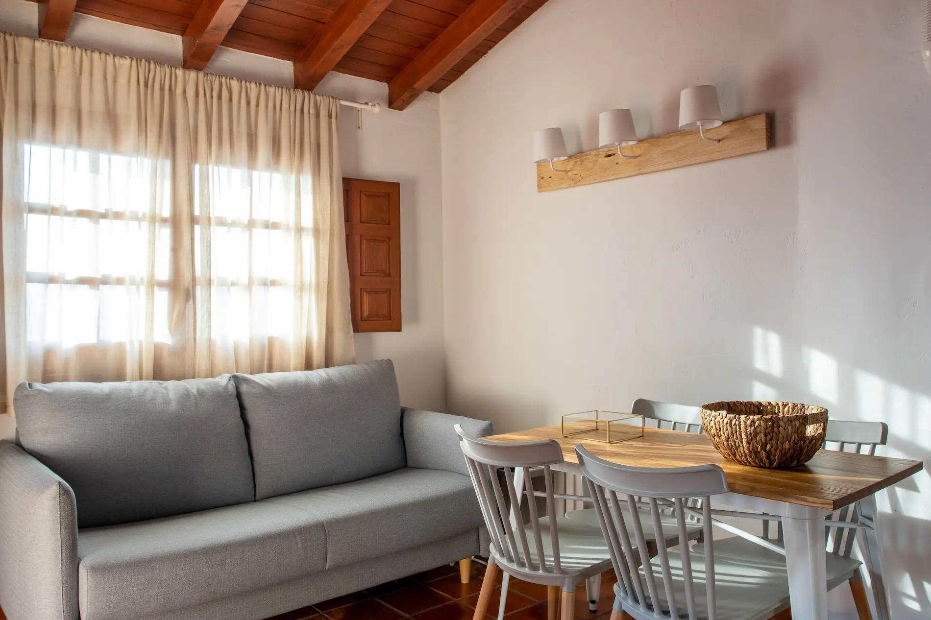 El sofá del salón se convierte en una cómoda cama de matrimonio, ideal para familias y grupos de amigos. En total, el complejo puede alojar hasta 34 personas.