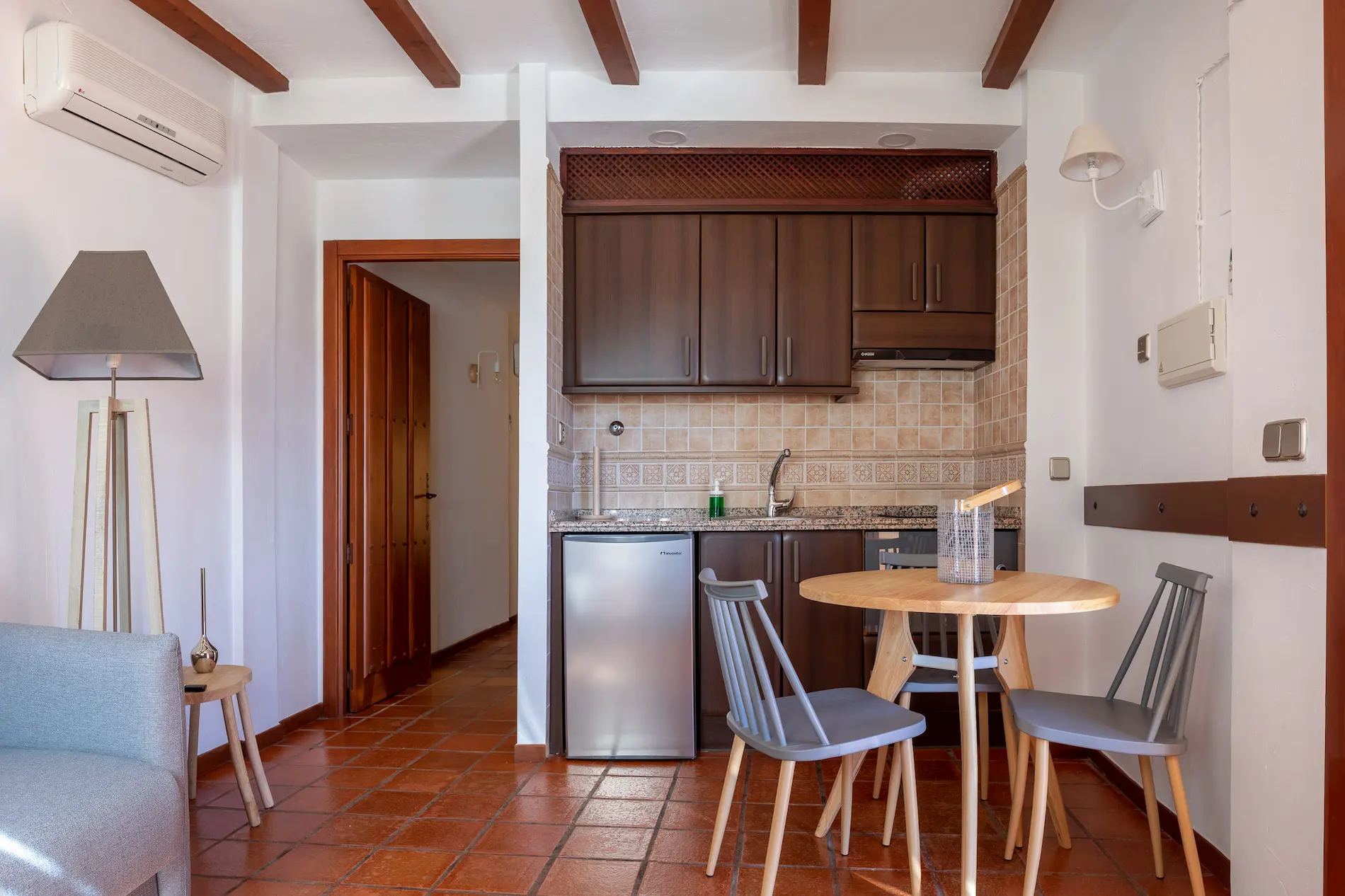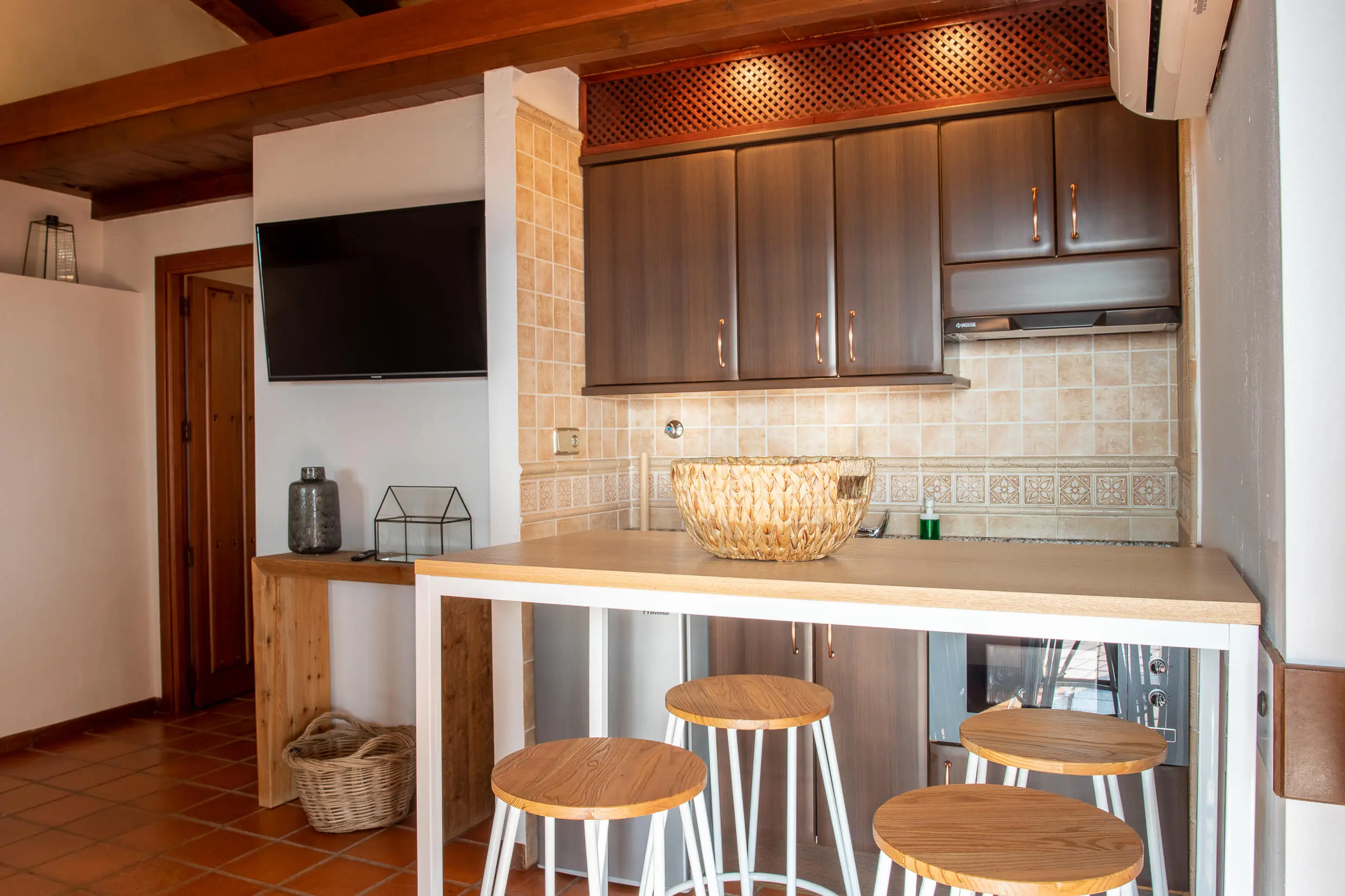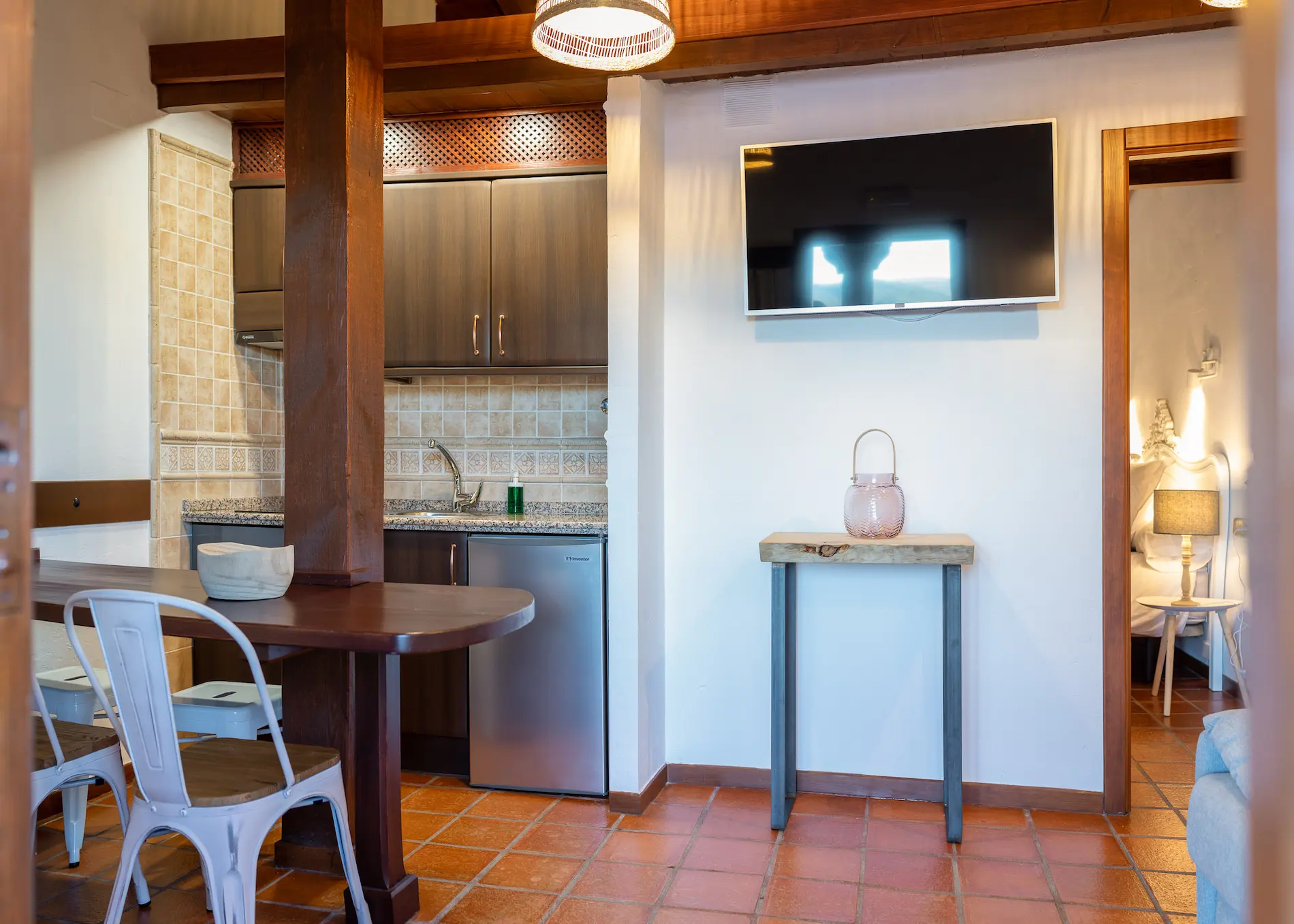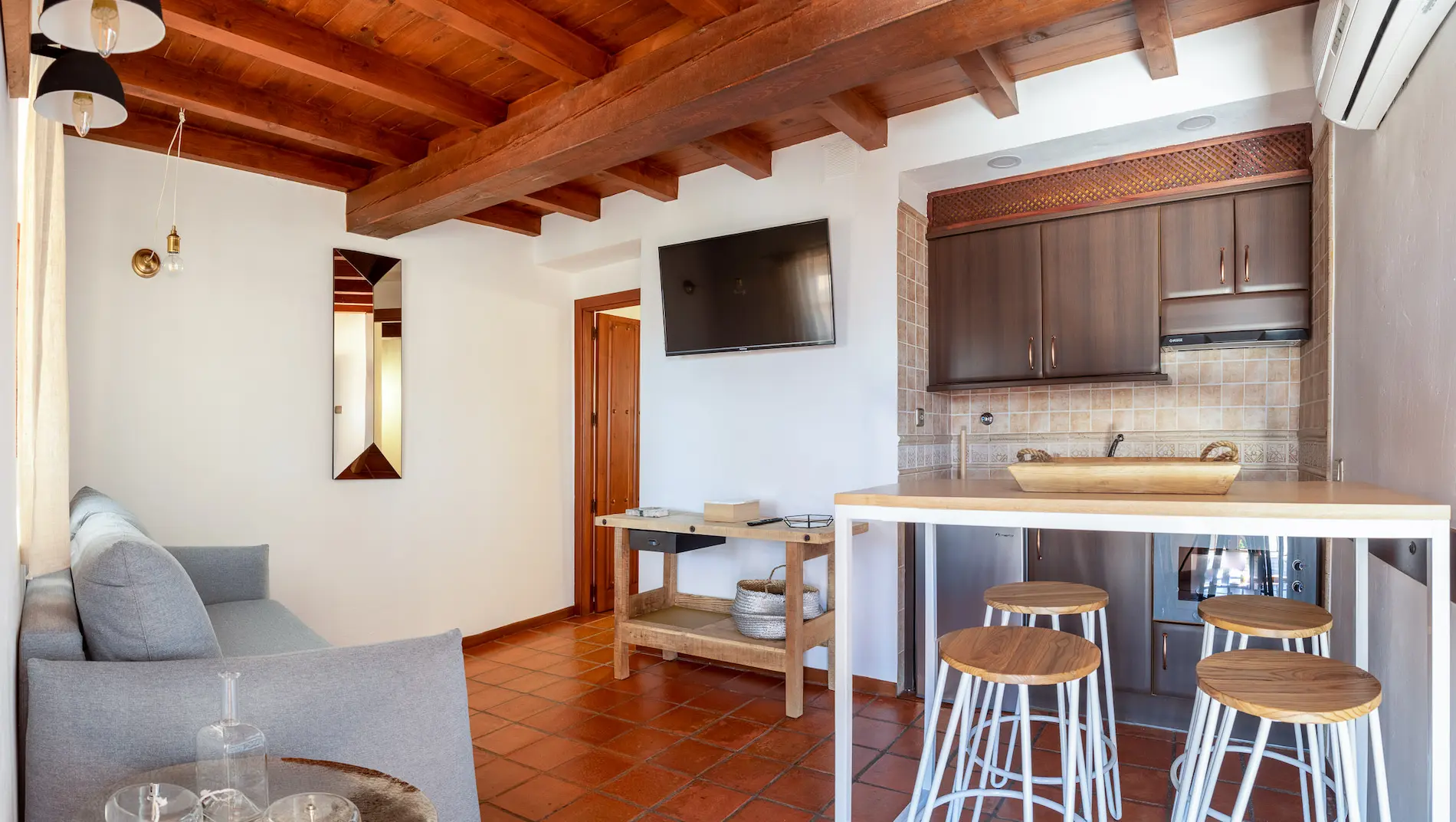 El complejo cuenta con 7 apartamentos de un dormitorio y salón, y un octavo apartamento con dos dormitorios para hasta 6 personas. Todos disponen de una acogedora sala de estar con cocina y un baño privado.